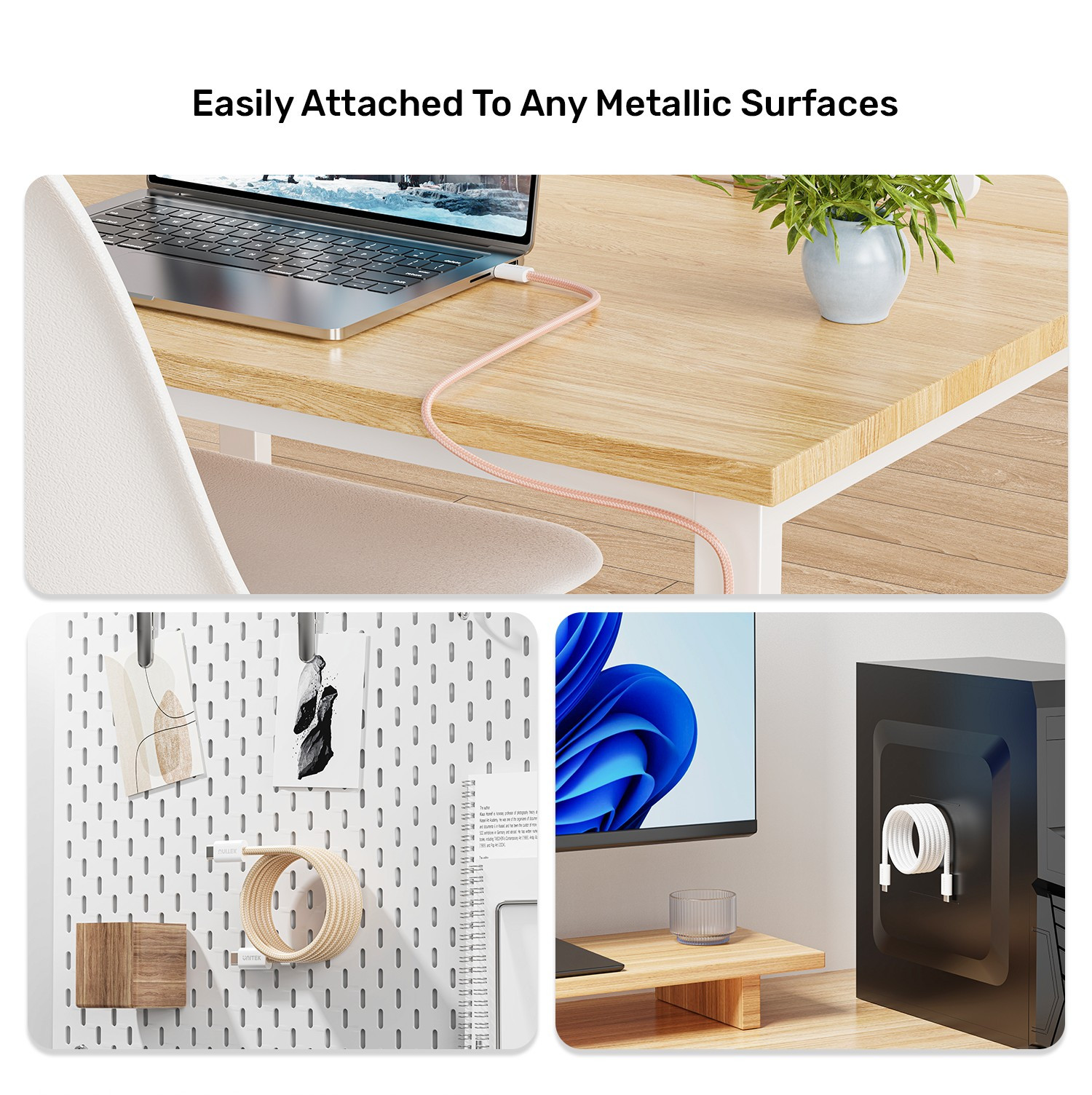 Manyetik tasarımı sayesinde kolayca metalik yüzeylere tutunur ve çalışma alanınızı düzenli tutmanıza yardımcı olur. Masanızda, pano üzerinde veya bilgisayar kasasında olsun, bu pratik kullanım sayesinde kablonuz güvenli ve erişilebilir kalır. Ev ve ofis için verimliliği artırır.